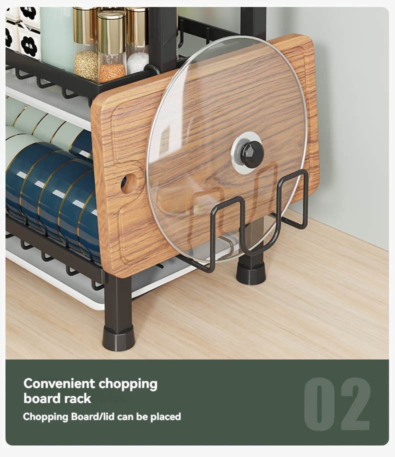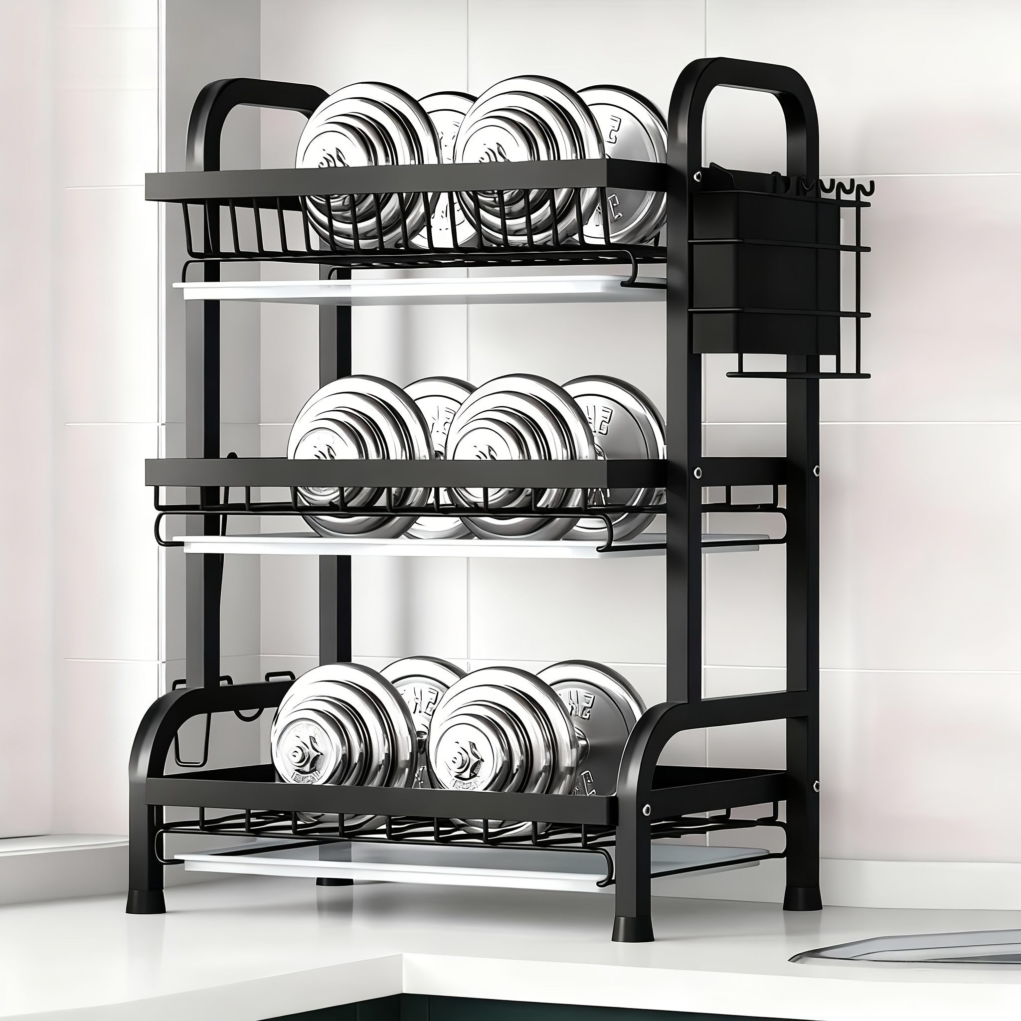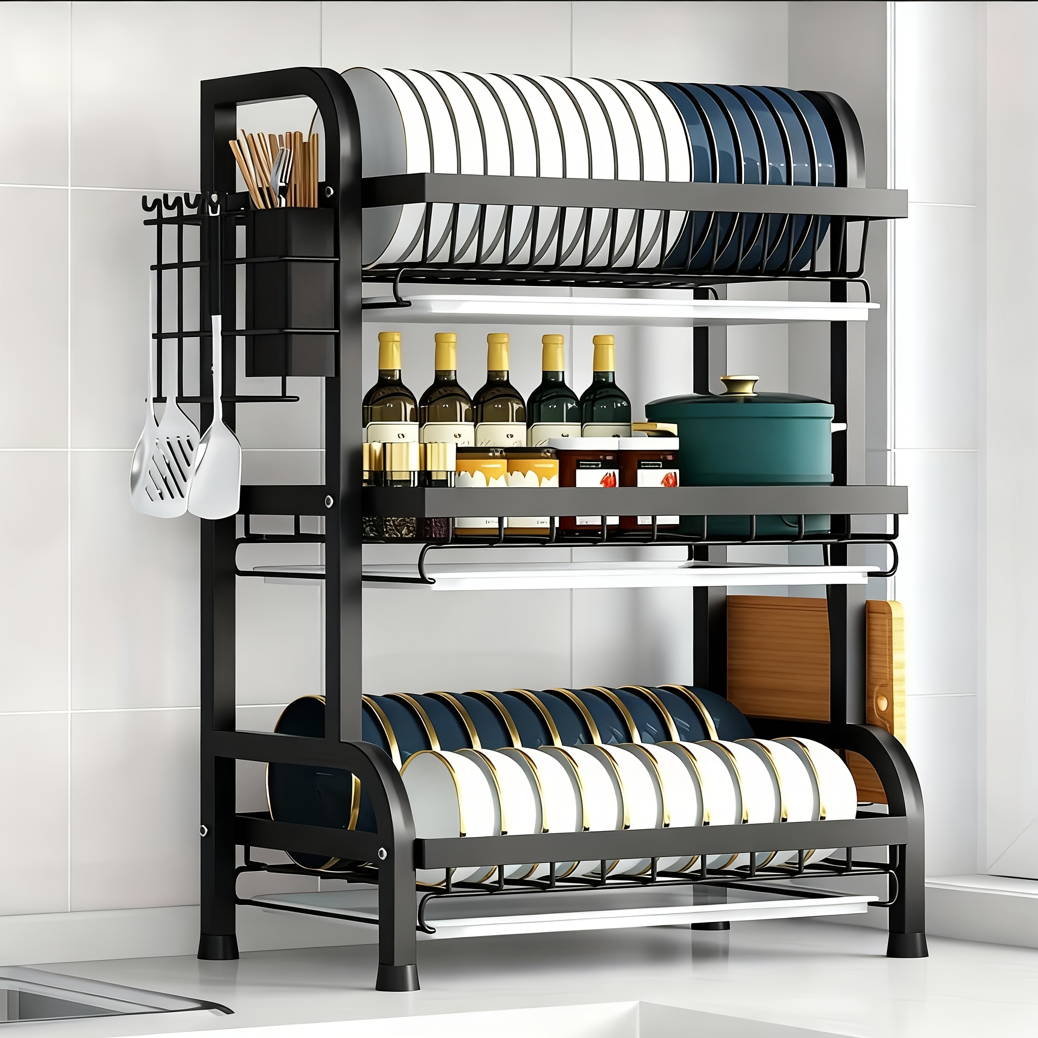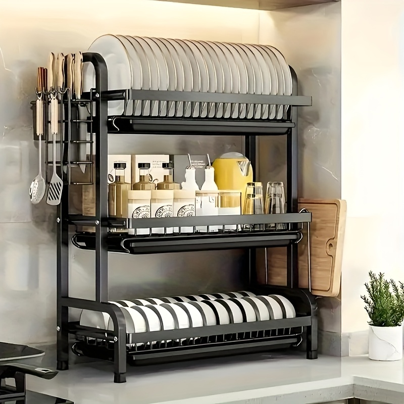 This sleek 3-tiers kitchen rack is designed to keep your dishes neatly arranged while saving valuable space.
